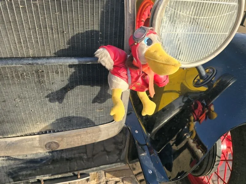 Some of the cars have mascots, including ours.